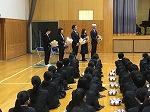 朝の会、大掃除の後、修了式を行いました。修了式の前に、先日行われた県春季弓道大会の表彰披露を行いました。