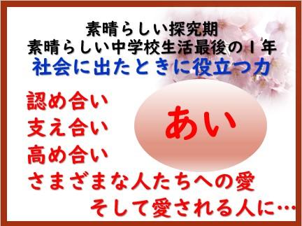 新入生の皆さん、人生に一度しかない中学校生活、一緒に楽しみましょう!」