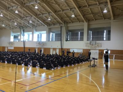 昨年度はMeetでの開催でしたが、今年は中学生、高校生合わせて約1300人の全校生徒が一堂に会し、対面式が行われました。