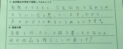 ~錦丘中学校で頑張ってみたいこと・将来の夢~