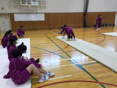 体育の授業では、グループ対抗のマット運動審査会を一人一台端末を用いて行っていました。