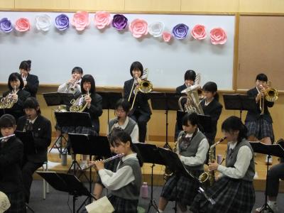 12月17日(日)に、本校の視聴覚室で金沢錦丘中学校吹奏楽部の校内演奏会がありました。3年生にとって中学校部活動の大切な思い出となる最後のステージでした。