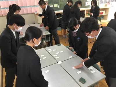 金沢錦丘中学校では、1月に各学年で百人一首大会を行います。冬休みが明けてすぐ1月10日(水)には、2年生の百人一首大会です。冬休みにも練習ができるように、各学級で練習が始まりました。