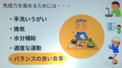 保健委員会のみなさんが元気な冬休みを過ごすことができるように「免疫力up」動画を作成してくれました。夏の熱中症対策動画に続いて、今回は第2弾になります!! 今回も、内容、シナリオ、演出等、すべて保健委員のメンバーが考え制作してくれました。