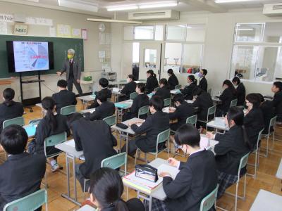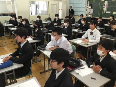 併設型中高一貫教育校である金沢錦丘中学校の特色の一つに、ブリッジ授業があります。この授業は、もうすぐ高校1年生として進学する3年生に向けて、高校の先生方にしていただく特別授業です。