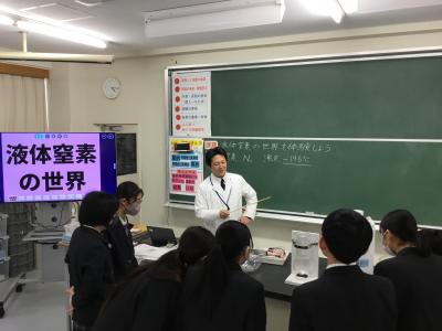 理科では、液体窒素を使った実験を行い、「なぜこんな現象が起こるのか」をこれまでの知識を使って発展的に考えました。