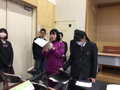 在校生である1・2年生も、よい卒業式になるよう歌練習をしています。金沢錦丘中は、校歌を3部合唱で歌います。特に、男性パートは人数が少ないのですが、音程が安定しており大変上手です。体育館には、美しい3部合唱のハーモニーが響いていました。