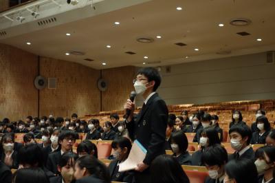 聞き手の姿も立派でした。ディスカッションタイムでは、自分の感想に加えて、質問する場面もあり、自分の思いをしっかり伝えようとする態度も大変よかったです。1年生の成長を感じました。