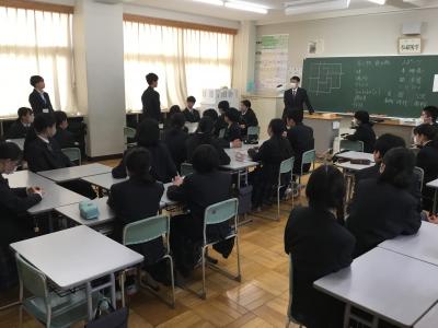 午前には、3年生は錦丘高校の森校長先生から高校での学びについての講話を聞きました。1・2年生は仲間づくりプログラムと、2年生年が1年生に生に錦丘体操を伝授しました。午後には、全校生徒が第一フロアに集い、レクレーションと話し合い活動を行いました。