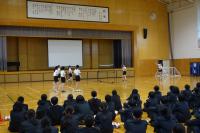 午前には、3年生は錦丘高校の森校長先生から高校での学びについての講話を聞きました。1・2年生は仲間づくりプログラムと、2年生年が1年生に生に錦丘体操を伝授しました。午後には、全校生徒が第一フロアに集い、レクレーションと話し合い活動を行いました。