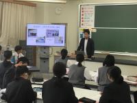 1年生の総合的な学習の時間では、キャリア学習「石川県が誇る技」として、石川県内の様々な産業に携わる方々を講師としてお招きし、その産業についての理解を深める学習を行っています。今日は、5人の講師の方をお招きしお話していただきました。