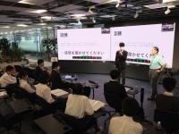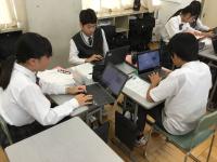 講話の後、生徒達はそれぞれの会社の魅力や工夫や今後の方向性などをまとめ、プレゼンテーションソフトを使って企業紹介を作成します。早速、紹介の内容や順番などを意欲的に話し合う姿が見られました。