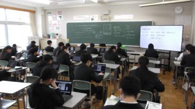 これまでの他地域の学習や、中部地方の産業や交通網の特色から、石川のこれからがどうなるのかを新聞にまとめました。手書きやスライド、ロイロノートスクールで作成する生徒など、それぞれの表現しやすい方法で集中して取り組む姿が見られました。