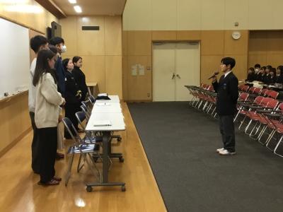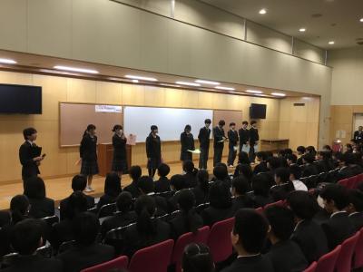 生徒会執行部が企画した12月4日(水)の人権集会をうけて、各クラスでアイディアを出し取組を行ってきました。今日は2学期の最終日なので、各クラスのリーダーから取組状況の報告がありました。