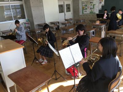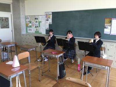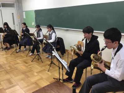 高校棟の教室でも、吹奏学部が各パートにわかれて、高校生と一緒に練習をしていました。