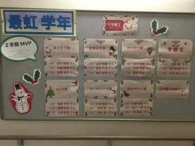 冬休みが始まります。楽しいけど慌ただしい年末年始です。元気で安全に過ごしてください。新学期に皆さんの元気な姿を見ることができることを楽しみにしています。よいお年をお迎えください。