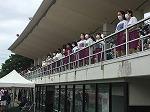 スポーツテスト測定終了後は、クラス対抗リレー(女子400mR・男子400mR・混合800mR)が行われました。リレーメンバーの懸命な走りに、中学、高校、学年、クラス関係なく、観覧席・芝生席から拍手や声援を送る生徒の皆さんの姿は、本当に素敵な光景でした。中高の一体感を実感した瞬間でした。また、400mリレーには、嶋中学校校長先生を含む先生チーム(13名でバトンをつなぎました)も参加しました。校長先生の若々しい走りは、見事でした。