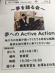 6月14日(月)には、『キャリア教育【Find  Your Max】』の一貫として実施する「夢を語る会」(写真)の講師として、貴重な体験を語っていただく予定です。ピアノ演奏も披露していただきます。とても楽しみです。