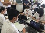 本校では今年度の研究主題を、『自律的に学ぶ生徒の育成~生徒が「見方・考え方」を働かせる授業づくりを通して~』に設定し、①思考力・判断力・表現力の育成に向けた教科の軸を明確にした授業実践、②見通し・振り返りの習慣化、③1人1台端末の効果的な活用に向けた日常的な実践の積み上げ、の共通実践に取り組んでいます。