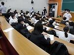 金沢大学では、概要説明を受けた後、6グループに分かれて、講義【フランス語(文法・会話)、中国語(文法・会話)、ロシア語、哲学、スポーツ科学、論理学と数学の基礎等】参観、図書館見学を行いました。その後、大学紹介、大学生との交流会と続きました。