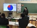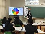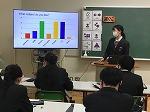 2年生の英語では、プレゼン発表を行っていました。各自が調べたいトピックを決めて、クラス調査を行い、その結果を図表やグラフにまとめ、発表しました。「日常的な話題について、事実や自分の考えなどを整理し、簡単な語句や文を用いてまとまりのある内容を話すことができるようにする」は英語4技能【話すこと[発表]】の目標の1つです。