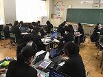 3年社会科では、経済の仕組みの学習として、各グループで架空の株式会社を設立しながら、理解を深めています。今日は、各グループで設立した会社の事業説明のプレゼン作成に取り組んでいました。生徒達は、年明けの各グループによる企業名、人事配置、事業説明、商品・サービス内容、社会貢献活動等についてのプレゼン説明を聴いて、出資及び出資額を決定します。