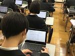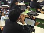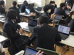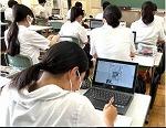 石川県立金沢錦丘中学校・高等学校(嶋耕二中学校長・朝田肇高等学校長)は、2014年に併設型中高一貫教育校としてスタートした石川県内の唯一の公立中高一貫教育校である。生徒の主体的な学びを進める中で、1人1台端末を活用して学校と家庭で主体的な学びを連携させ、児童生徒の情報活用能力を育成するとともに、家庭学習の充実に努めている。中学校では、1人1台端末環境を活かして、探究レポートに取り組んでいる。現在、理科学習や総合的な学習の時間等の探究的な学びを中心にして、学校や家庭での学びを進めている。「レモンはなぜ酸っぱいのか」「虹はどうしてできるのか」など、生徒が自ら設定した学習課題を自力で解決する学習で1人1台端末を活用している。これまでに、150作品以上がクラウド上で共有されており、それらはアーカイブ化して蓄積されている。英語の授業では、生徒がデジタル付箋で意見を共有して、情報端末で英文を書いてまとめていた。これらは、すべて英文で書き上げている。