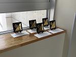 式後は、各教室に戻り、記念品制作に取り組みました。1人1人の思いを、金沢の伝統工芸である金箔を使った角皿に表現しました。生徒の皆さん、とっても楽しそうでした。作品は、4階高校棟に続く渡り廊下に展示してあります。