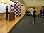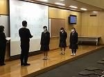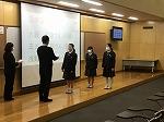 最後に、同窓会入会式を行いました。廣部同窓会代表から温かい励ましのメッセージを頂きました。幹事代表が、「中学校での3年間の学びは、次の3年間の学びの糧となり、私たちは前進を続けます。金沢錦丘中学校同窓会員として誇りを纏い、各々自分の夢のために努力を惜しまず、我が校の威名を轟かせんとすることをここに誓います」と力強くあいさつするとともに、幹事が紹介されました。