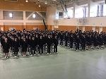 1、2限目に、全校生徒が参加しての式練習を行いました。明日に向けて、みんなの気持ちがひとつになっていくのを実感しました。