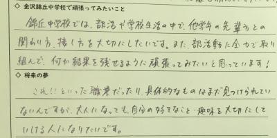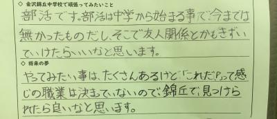 ~錦丘中学校で頑張ってみたいこと・将来の夢~