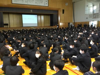 昨年度はMeetでの開催でしたが、今年は中学生、高校生合わせて約1300人の全校生徒が一堂に会し、対面式が行われました。