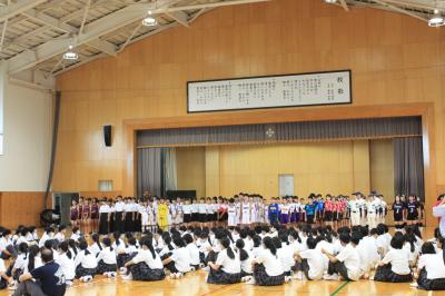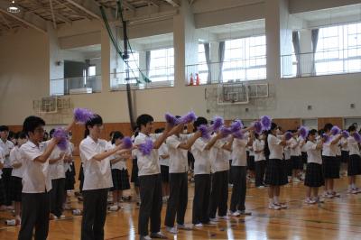 応援団は、3年生の有志のみなさんです。これまで一緒にがんばってきた後輩達を思う温かい気持ちが伝わる激励会になりました。