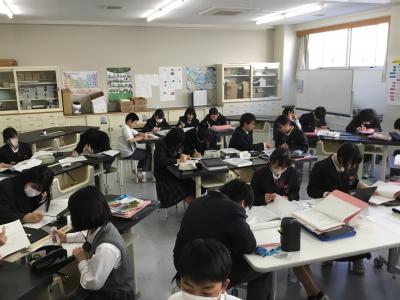 (この時間は都合で、他教科の先生が授業にでてくださっていましたが)今日の学習課題を把握し、既習内容を活用して自分たちで学び合う自律した生徒達のすてきな姿が見られました。