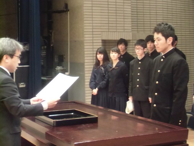 12月11日(金)、平成27年度いしかわ高校科学グランプリの表彰式が石川県文教会館で開催され、13校の代表28チームが参加の中、本校の「 twin water revolution 」が見事3位に入賞しました。