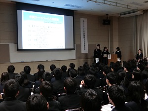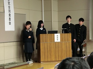 1月29日(金)午後1時から本校視聴覚室と講堂にてNSH課題研究合同発表会が行われました。第1部には各校の代表チームが発表を行いました。工夫を凝らした発表に対し、活発に質疑が行われ、大いに盛り上がりました。講堂での第2部ではワークショップ形式で発表と質疑が行われ、活発な意見交換がなされていました。大変実りある時間となりました。