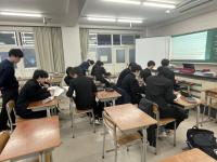 模擬試験は全国規模の練習試合、学びもらしがないかどうかを確認する場です。今できることを一生懸命やりきること、まずは来週の定期試験をがんばろうと伝えました。