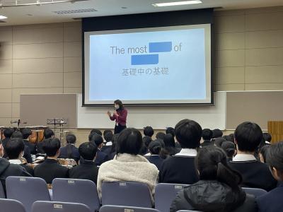 さらに英語の米林先生からは「難関大は予約をすれば入れるレストランではない、お客を選ぶ敷居の高いレストラン。選ばれる側にならなければなりません。」というお話もありました。