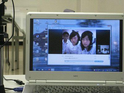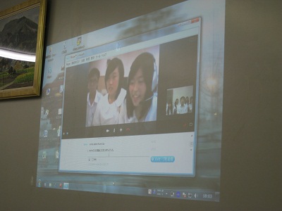 コンピュータの画像を壁に映し、みんなで顔を見ながら話します。
