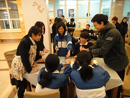 水餃子、ワンタンを一緒に作り、巻き寿司の作り方を市西中学の生徒に教えてあげました。