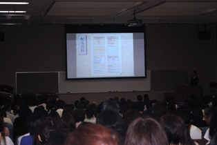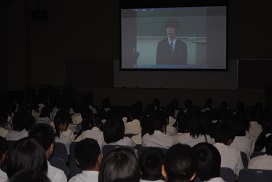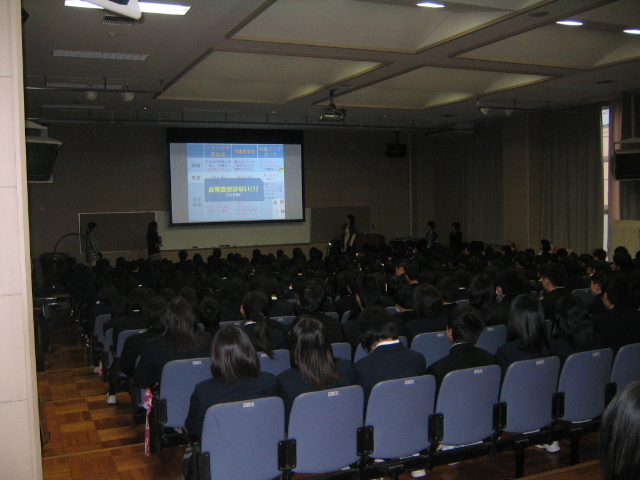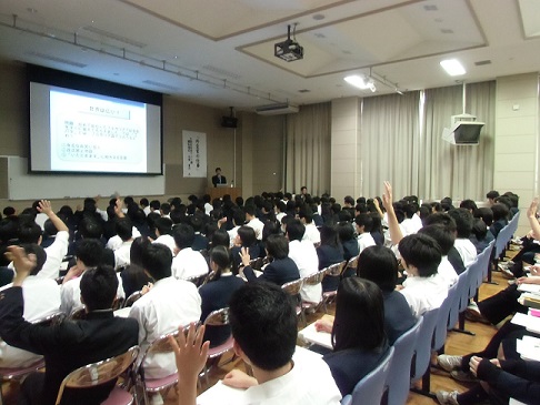 岡田先生は「文武両道」のためには、「時間を有効に使うこと」、「今やるべきことを100%全力でやること」、「今やっている様々なことは必ず将来はつながりを持つようになるので、それを信じて夢をあきらめないことが大切」などと自分自身の体験談などを紹介し、途中、ゲームなども取り入れながら盛りだくさんの内容で1年生に熱いエールを送ってくださいました。