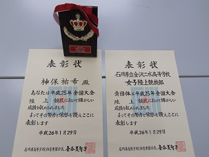 石川県高体連の表彰を受けました。