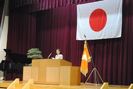 校長先生からは「避難指示が常に正しいとは限らないから、何が必要かを判断して適切な行動を取ることが大切である。」「災害はいつ、どこで起こるか分からないが、まずは身の安全を確保し、他の人を助けられる状況の時は進んで助ける。」また、消防署の方からは「避難の際は、押さない・かけない・しゃべらない・戻らない、を守って欲しい」という講評をいただきました。