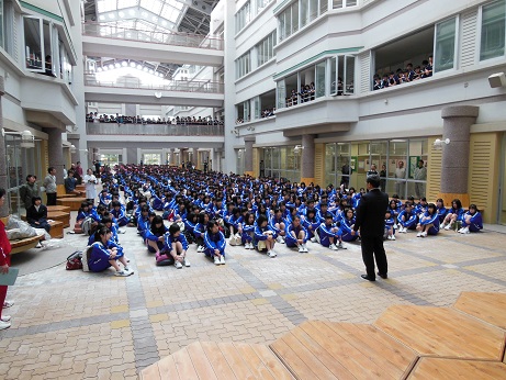 2年生は、10月30日(水)6、7限に国際理解教育講演会として、外務省 アジア大洋州局 南部アジア部 南西アジア課 課長補佐の江端康行氏に講演していただきました。生徒は、10/16~10/19に修学旅行で台湾に行ったこともあって、外国への関心は高く、外交官として日本と外国をつなぐ仕事をしてこられた江端氏の講演の内容に、大いに興味を示して、熱心に聴き入っていました。