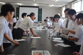 午前と午後の部でそれぞれ、本校の概要説明を聞き、校舎内や部活動を見学、そして25分間の模擬授業2コマ(文系科目と理系科目1コマずつ)を体験してもらいました。