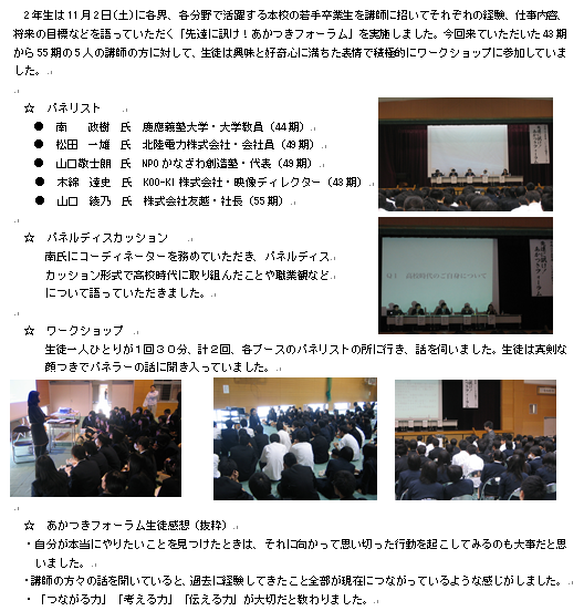 平成25年度 あかつきフォーラム(2年)を実施しました。