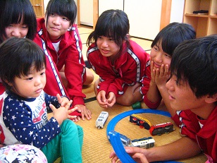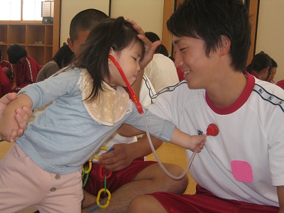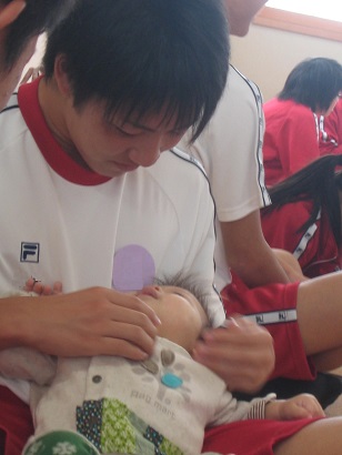 きょうだいやいとこなどのお世話の経験があり、乳幼児と楽しく過ごす自信のある生徒もいれば、乳幼児との触れ合いが初体験になる生徒も多く貴重な時間となりました。同じ月齢の乳幼児でも人見知りがあったりなかったり、男の子と女の子ではおもちゃの興味が同じだったり異なっていたりと「発育には個人差がある」ということを実感できました。