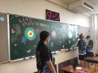 美術室には綺麗な黒板アート! 一見の価値あり。また、制作コーナーもあります。