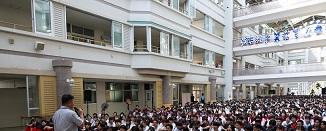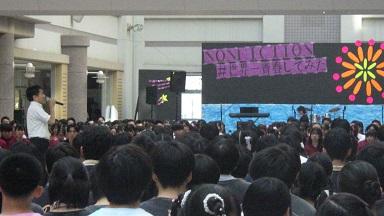 開会式(生徒会会長あいさつ、校長先生あいさつ)