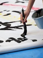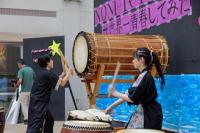 ガレリアでのオープニングアクトは和太鼓演奏♪、有志による漫才、そして書道パフォーマンス